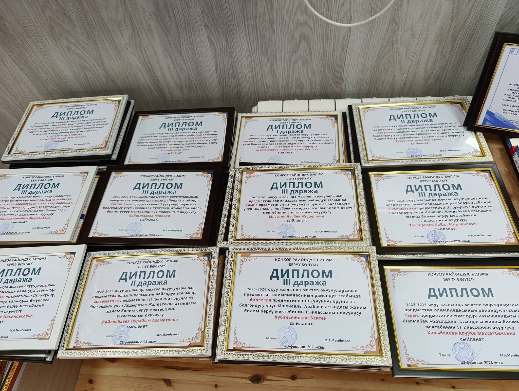 📚🏆 СҮЙҮНЧҮЛҮҮ ЖАҢЫЛЫК! 🏆📚 Биздин мектептин окуучусу Жакшылыкова Мадина орус адабияты сабагы боюнча райондук олимпиадада I орунду багындырып, облустук этапка жолдомо алды! 🎉 Бул чоң жетишкендик — Мадинанын тырышчаактыгынын, изденүүсүнүн жана мугалиминин талыкпаган эмгегинин жыйынтыгы. Окуучубузду даярдаган Карыпкулова Мырзагүл эжеге терең ыраазычылык билдиребиз! Сиздин эмгегиңиз баа жеткис. Мадинага облустук этапта ийгилик каалайбыз! Районубуздун,мектебибиздин намысын татыктуу коргоп, дагы да бийиктиктерди багындыра берсин! 🌟 Ийгиликтер арбын болсун! 🌟 Дагы да көптөгөн жеңүүчү окуучулар чыга берсин
